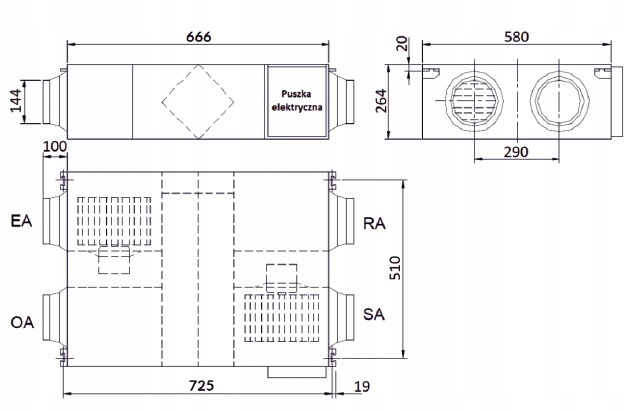 - ventilatoare de curent alternativ cu 3 viteze (alimentarea și evacuarea funcționează simultan)Pre-filtre G3 care protejează schimbătorul de murdărirea rapidă (comparativ cu recuperatoarele standard - fără filtru F9 și presostat asociat),