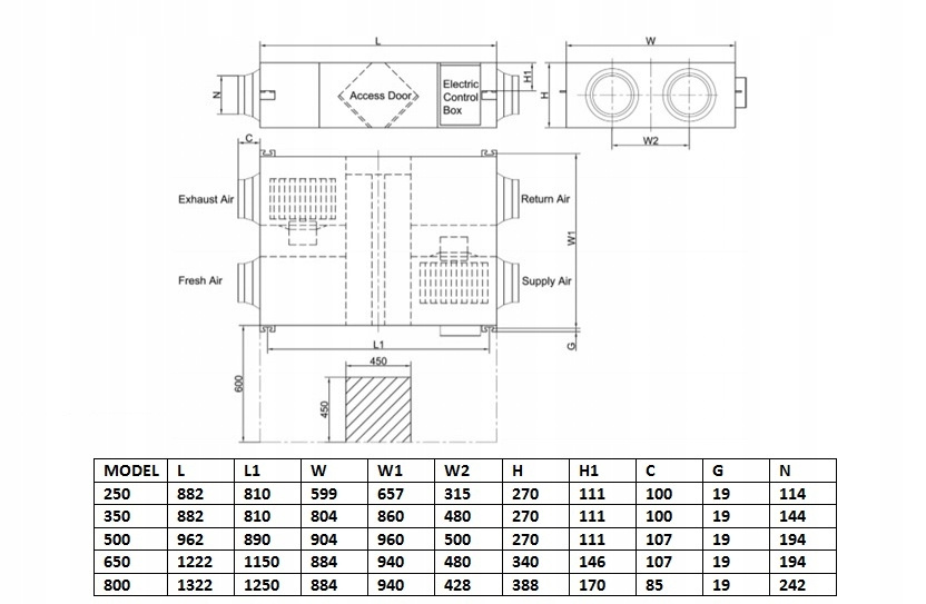 Recuperator de caldura de entalpie, unitate de tratare a aerului 250m3/h