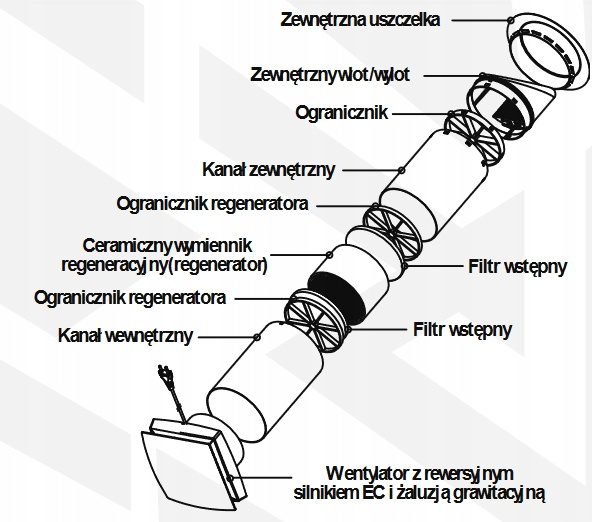 - schimbător ceramic pentru recuperarea căldurii și a umidității,