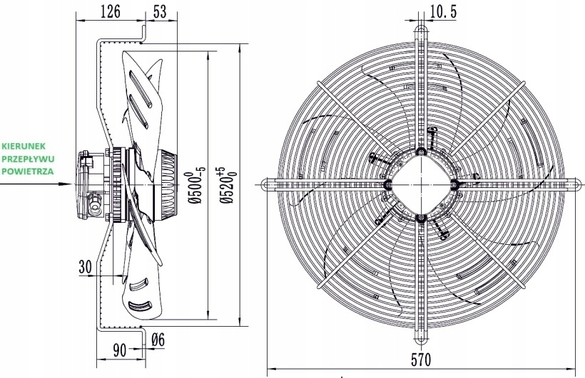 Ventilator axial industrial 500mm YWF-4E-500B-137/35-G - descărcare