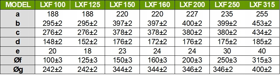 - Ventilatoare LXF în diametre 100, 125, 150, 160, 200, 250, 315 au motoare monofazate.