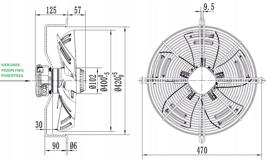 Ventilator axial de fortare 400mm YWF4E-400B-102/47-G
