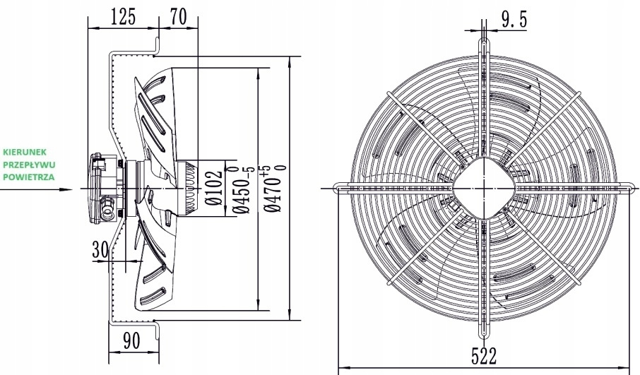 Ventilator industrial de fortare 450mm YWF4E-450B-102/60-G