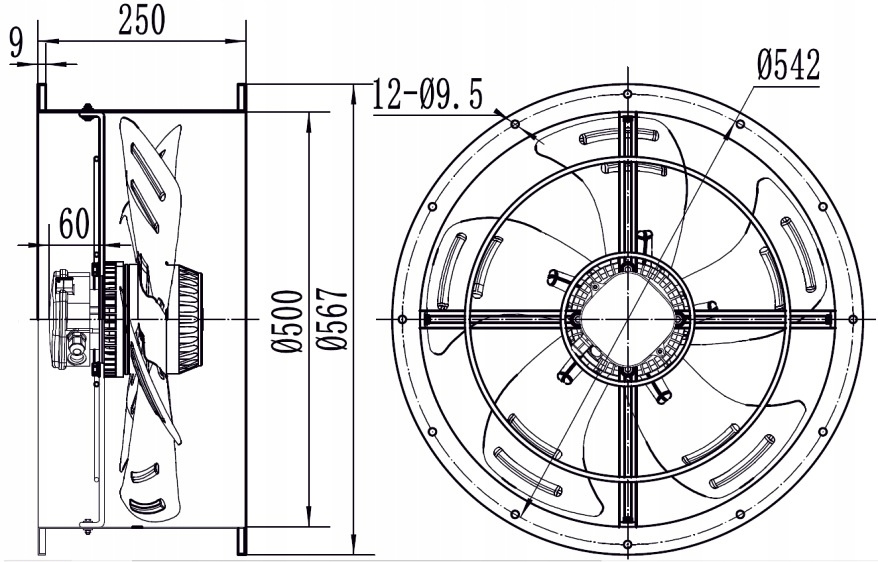 Ventilator industrial 500 mm - YWF-4E-500B-137/35-T